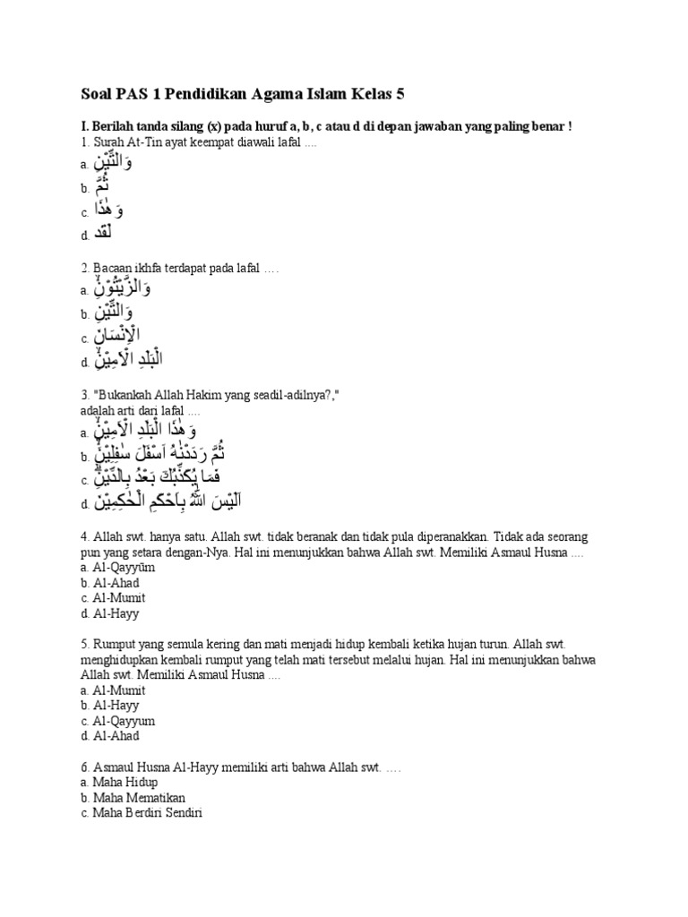 Pendidikan Agama Islam (PAI) memegang peranan krusial dalam membentuk karakter dan pemahaman spiritual anak usia sekolah dasar. Di kelas 5 SD, siswa diharapkan telah memiliki dasar-dasar pemahaman yang lebih mendalam mengenai akidah, akhlak, fiqih, dan sejarah kebudayaan Islam. Untuk mengukur sejauh mana pemahaman tersebut tercapai, ujian akhir semester menjadi salah satu alat evaluasi yang penting. Artikel ini akan menyajikan serangkaian contoh soal ujian Agama Islam kelas 5 SD semester 1, lengkap dengan penjelasannya, untuk membantu guru dalam menyusun soal serta siswa dalam mempersiapkan diri.
